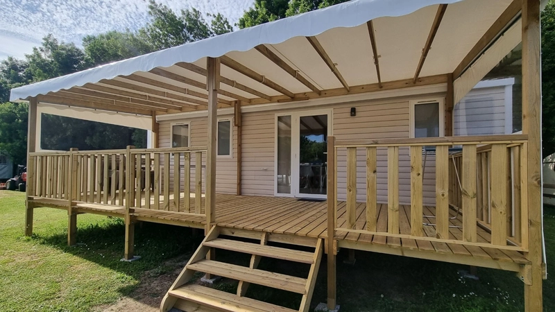 You will find fully equipped mobile homes for a comfortable and enjoyable stay with family or friends. But we also offer more unusual and natural accommodation, such as our Coco-Sweet tents, which provide a cosy and original space while maintaining the spirit of a holiday close to nature. Hello-cabane are wooden cabins with comfortable beds and space to store bicycles. Our Mataï cabins appeal for their simplicity and practicality thanks to their minimalist design. Our Campétoile tents offer a totally unique night's sleep, with a view of the sky. These types of accommodation are ideal for cyclists or hikers on the move.